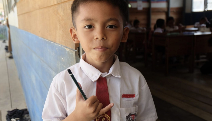 "Kalau anak-anak di kota belajar biologi di laboratorium, di sini kami belajar langsung di hutan belakang sekolah," imbuh Chris.